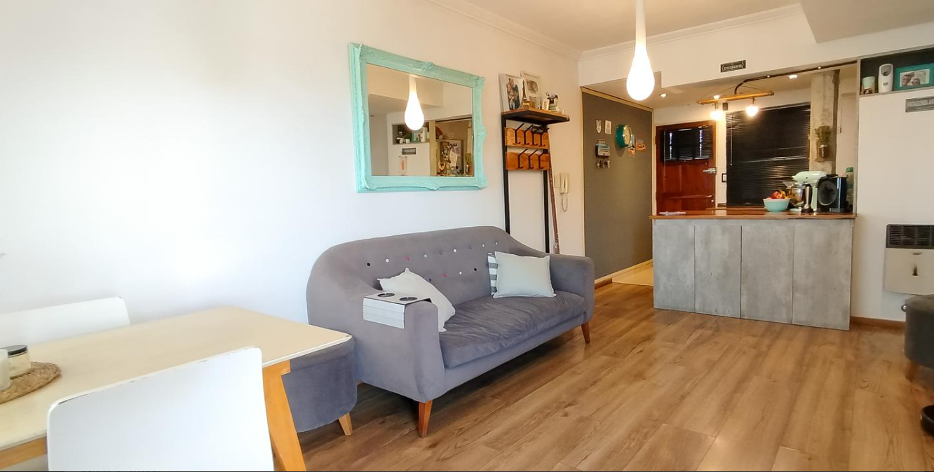 La disposición de los ambientes es ideal tanto para una pareja joven como para una familia pequeña o incluso para quienes necesitan un espacio de home-office en el segundo dormitorio.